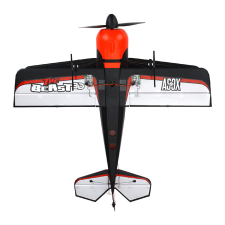 The E-flite® UMX™ Beast® 3D aircraft is a totally new experience in all-out 3D flight capability and satisfaction from an amazing aircraft that doesn’t need any more space than a small park, a yard or an indoor gym to be enjoyed. Enhanced with the AS3X® System, the UMX Beast 3D plane is specifically set with an aft CG and large control surface deflections for maximum maneuverability. However, instead of handling that feels super sensitive, the UMX Beast 3D plane, with the AS3X System, flies ultra smooth, even in conditions considered windy. Plus, you get locked-in precision and the outstanding control authority necessary to perform 3D more confidently. Designed by aerobatic world champion Quique Somenzini, this authentic UMX re-creation of the full-scale Beast delivers precision aerobatic and 3D excitement with the kind of stability and authority more in common with aircraft many times its actual size. And you get all the benefits without having to spend a lot of time programming. No mixing is required—just add your Li-Po battery, bind to a basic DSM2®/DSMX® airplane transmitter setup, and the UMX Beast 3D plane will instantly offer you the best flight experience possible.